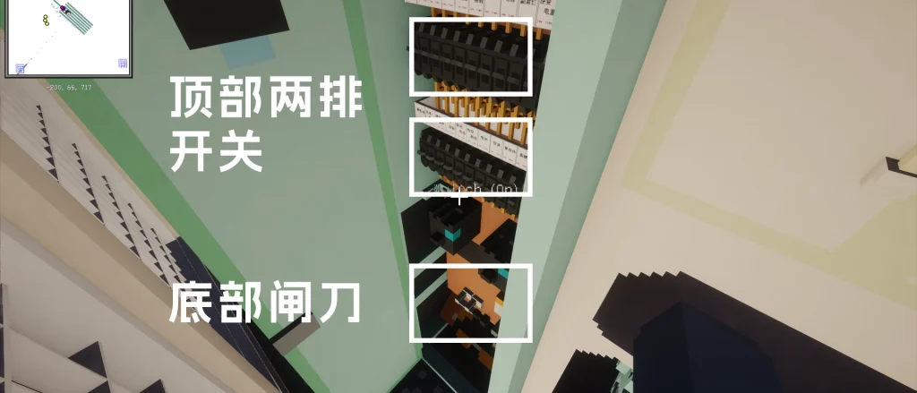 ( 微机柜下方闸刀、微机柜上方两排开关)