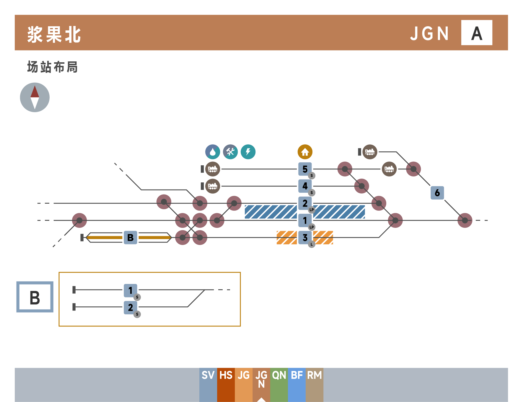 浆果铁路 各车站站场布局 临时页面 浆果车站 站场布局图 浆果出站为单线铁路,切勿盲目闯灯行驶北部框选区域为B站场 北联线区域南部横向线路为A站场 浆果东线区域 浆果北站 站场布局图 浆果北站线路较为复杂,切勿盲目闯灯行驶,切勿随缘行驶 桥南站 站场布局图 粮厂附属站 新的版面正在施工中 敬请谅解 狐狸(左一)和渚渚(左三)正在持续建设网站中,感谢您的理解。 安全出口 >>>